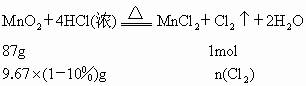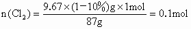 固体9.67g跟过量的浓盐酸60g反应,当生成氯气充分排出后,向反应液中加入足量的硝酸银溶液生成沉淀57.4g,求原盐酸溶液的质量分数?
