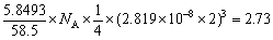 晶胞中含有4个Na+和4个Cl-,边长为题给核间距的2倍,5.8493g食盐共占体积25-22.27=2.73cm3,依题意有: 解得 NA=6.05´1023(mol-1)