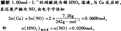 把200 mL、1.00 mol·L-1的硝酸与铜反应后的溶液小心蒸干,得到7.26 g Cu(NO3)2·3H2O晶体,则起氧化剂作用的HNO3的物质的量为________.