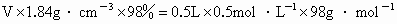 ,质量分数为98%的浓硫酸来配制