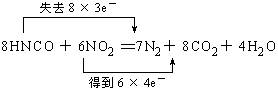 三聚氰酸〔C3N3(OH)3〕可用于消除汽车尾气中的 氮氧化物(如NO2),当加热至一定温度时,它发生如下分解:C3N3(OH)3(1)写出HNCO和NO2反应的化学方程式,分别指明化合物中哪种元素被氧化?哪种 元素被还原?标出电子转移的方向和数目。