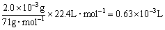 自来水厂常用氯气消毒杀菌,1.0L水约通入2.0´10-3g氯气就可达杀菌目的。设水的密度为1g/cm3。(1)求1000kg自来水约需通入标准状况下的氯气体积。