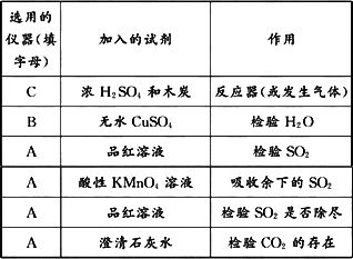 请从下图中选用所需的仪器(可重复选用)组成一套进行该反应并要检出反应产物的装置.现提供浓H2SO4、木炭和酸性KMnO4溶液,其他固、液试剂自选.(连接和固定仪器所用的玻璃管、胶管、铁夹、铁架台及加热装置等均略去)