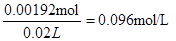 5Fe3+ + 4H2O,所以消耗的亚铁离子为0.000384mol×5=0.00192mol,所以浓度为![]()
