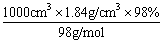 浓H2SO4的物质的量浓度为: