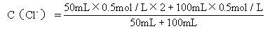 50mL 0.5mol/L BaCl2溶液和100mL0.5mol/L NaCl溶液混合后,求溶液中Cl-的物质的量浓度(设溶液体积变化忽略不计)。