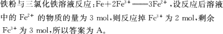 将适量铁粉投入三氯化铁溶液中,完全反应后,溶液中的Fe3+和Fe2+浓度相等,则已反应的Fe3+和未反应的Fe3+的物质的量之比是 | |