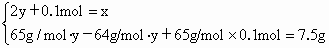 解: 硫酸的物质的量浓度 =2.1mol÷0.115L=18.3mol/L铜片的质量 =64g/mol×1mol=64g |