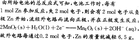 电池工作时,锌失去电子 |