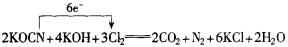 (2)投入过量液氯,可将氰酸盐进一步氧化为N2.请配平下列化学方程式,并标出电子转移的方向和数目:KOCN+KOH+Cl2→CO2+N2+KCl+H2O