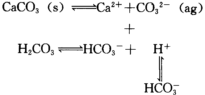 碳酸钙是难溶化合物,在水溶液中存在溶解平衡,二氧化碳与水反应生成碳酸,碳酸电离产生的氢离子会造成碳酸钙的溶解平衡向溶解方向移动. 解答:碳酸钙在水中存在着以下溶解平衡: