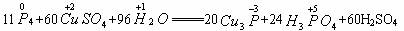答案:11P4+60CuSO4+96H2O====20Cu3P+24H3PO4+60H2SO4