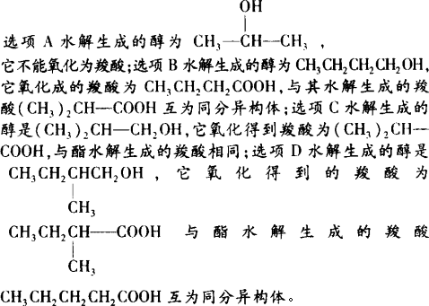 某酯完全燃烧生成等物质的量的二氧化碳和水.该酯水解可得到羧酸X和醇Y,把醇Y氧化可得羧酸Z,X与Z互为同分异构体,则此酯可能是下列中的 | |