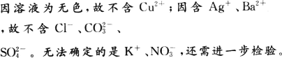 答案:K+、 解析: 方法技巧:本题还是离子共存知识的运用. |