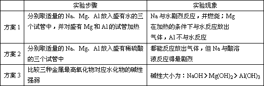 ②上面的实验表明:钠、镁、铝三种元素的金属性由强到弱的顺序为 。