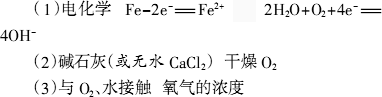 3·ÖÖÓ×óÓÒ£¬¹Û²ìµ½µÄʵÑéÏÖÏóΪ£º¢ÙÖ±ÐιÜÖÐÓÃÕôÁóË®½þ¹ýµÄ¹âÁÁÌúË¿±íÃæÑÕÉ«±äµÃ»Ò°µ£¬·¢ÉúÐâÊ´£»¢ÚÖ±ÐιÜÖиÉÔïµÄÌúË¿±íÃæÒÀÈ»¹âÁÁ£¬Ã»Óз¢ÉúÐâÊ´£»¢ÛÉÕ±Öг±ÊªµÄÌúË¿±íÃæÒÀÈ»¹âÁÁ£®ÊԻشðÒÔÏÂÎÊÌ⣺(1)ÓÉÓÚÓë½ðÊô½Ó´¥µÄ½éÖʲ»Í¬£¬½ðÊô¸¯Ê´·Ö³É²»Í¬ÀàÐÍ£¬±¾ÊµÑéÖÐÌúÉúÐâÊôÓÚ________¸¯Ê´£¬Æäµç¼«·´Ó¦·½³Ìʽ·Ö±ðΪ£º¸º¼«£º________£¬Õý¼«£º________£®