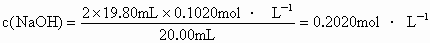 答案:0.2020mol/L#0.202mol/L#0.2020摩尔/升#0.202摩尔/升