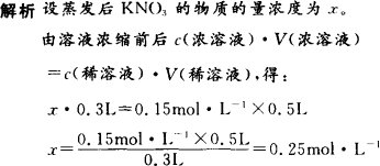答案:蒸发后KNO3的物质的量浓度为0.25 moL·L-1. |