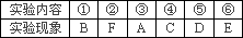 (3)实验内容:(填写与实验步骤对应的实验现象的编号和②③⑥的化学方程式)