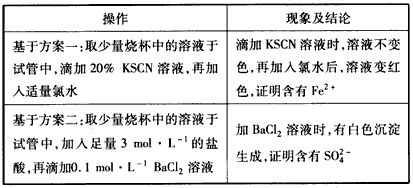 实验用品:0.1 mol/L BaCl2溶液、3 mol/L盐酸、0.1 mol/L KMnO4(H+)溶液、氯水、20% KSCN溶液、0.5 mol/L KI溶液,试管若干、胶头滴管若干