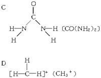 所以B为H—C≡N (HCN). 按照A、B的分析思路不难判断出C、D分别为 答案:H2O HCN CO(NH2)2 CH+3