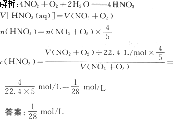 V(NO2)∶V(O2)=4∶1的混合气体与H2O形成的喷泉,求溶液里溶质的物质的量浓度.
