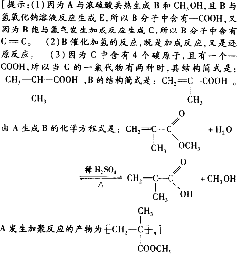 有机玻璃是一种重要的塑料,有机玻璃的单体A(C5H8O2)不溶于水,并可以发生以下变化: