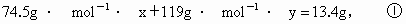 则有: 由①、②解得 x=0.1mol,y=0.05mol,所以 答:原所配溶液中 |