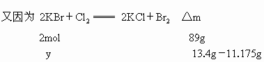 3 ∶2∶1解:设 KCl、KBr的物质的量分别为x、y则有