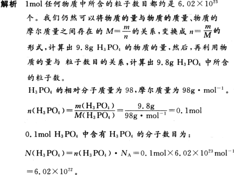 答案:9.8 g H3PO4中含有H3PO4的分子数目是6.02×1022.
