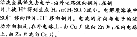 (易错警示)电子不能通过电解质溶液,而电流则是靠电解质溶液中的阴阳离子的定向移动通过溶液:阴离子移向负极,阳离子移向正极. |