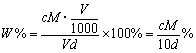 密度为dg/cm3的溶液V mL含有相对分子质量为M的溶质mg,其物质的量浓度为c mol/L,溶质质量分数为W%,下列表示式不正确的是( )