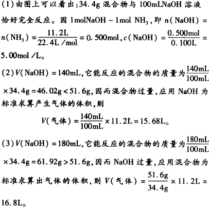 (3)µ±NaOHÈÜÒºµÄÌå»ýΪ180 mL£¬¹ÌÌå»ìºÏÎïµÄÖÊÁ¿ÈÔΪ51.6 gʱ£¬³ä·Ö·´Ó¦ºó£¬Éú³ÉÆøÌåµÄÌå»ý(±ê×¼×´¿ö)Ϊ________L£®