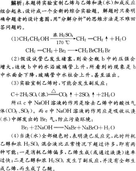 (4)某学生在做实验时,使用一定量的液溴,当溴全部褪色时,所消耗乙醇和浓硫酸混合液的量比正常情况下超过许多.如果装置的气密性没有问题,试分析其可能的原因.