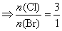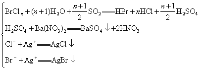 (1) (2)方法Ⅰ——方程式关系式法 由以上可得关系式: BrCln ~ nAgCl+AgBr 80+35.5 n 143.5 n+188 4.66 15.46 解出 n=3 方法Ⅱ——质量差法 BrCln ~ nAgCl+ AgBr Dm↑ 80+35.5n (n+1)×108 4.66 15.46-4.66 解出 n=3 方法Ⅲ——十字交叉法