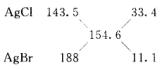 即n(AgCl)+n(AgBr)=0.1 mol 混合物的平均相对分子质量 十字交叉: 即