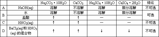 鉴别纯碱、石灰石、芒硝、石膏四种固体物质,下列试剂中应该选用 | |