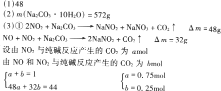 (3)现有1000 g质量分数为21.2%的纯碱吸收液,吸收硝酸工业尾气,每产生22.4 L(标准状况)CO2时,吸收液质量就增加44 g.