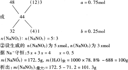 ②1000 g质量分数为21.2%的纯碱在20℃经充分吸收硝酸工业尾气后,蒸发掉688 g水,冷却到0℃,最多可析出NaNO2多少克?(0℃时,NaNO2的溶解度为71.2 g/100 g水)
