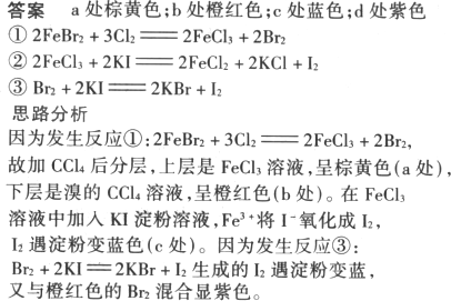 思想方法小结:①Fe2+有还原性,能被Cl2氧化成Fe3+,而Fe3+氧化性比I2强,可将I-氧化成I2;②Br2、I2在水中溶解度小,但易溶于某些有机溶剂.溴和碘在有机溶剂中呈不同颜色.
