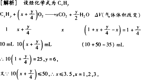 10 mL某气态烃,在50 mL氧气里充分燃烧,得到液态水和体积为35 mL的混合气体,该气态烃可能是 | |