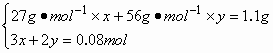 把铝、铁混合物1.1 g溶于200 mL 5 mol·L-1盐酸中,反应后盐酸的浓度变为4.6 mol·L-1(溶液体积变化忽略不计).