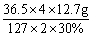 解:设消耗30%的盐酸质量为m1,消耗MnO2的质量为m2 MnO2+4HCl 2KI+Cl2══2KCI+I2 即:MnO2~4HCl~Cl2~I2 87 36.5´4 127´2 m2 m1´30% 12.7g (36.5´4)︰(m1´30%)=(127´2)︰12.7g m1= 87︰m2=(127´2)︰12.7g m2=
