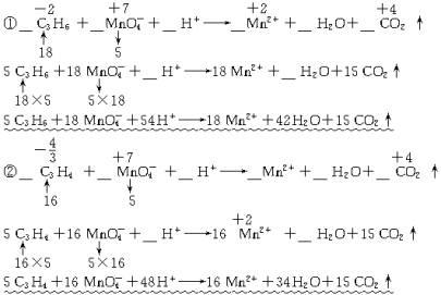 (1)丙烯和丙炔都能使酸性KMnO4(aq)褪色,试分别写出这两个化学反应的离子方程式。已知酸性条件下,Mn元素被还原到+2价,即生成Mn2+。①________________________________________________________