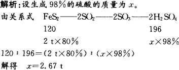 燃烧2 t含FeS2 80%的黄铁矿,理论上能生产98%的硫酸多少吨?