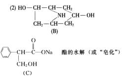 (1)A的分子式可以用最基本的方法由A的结构简式数出C、H、O、N的原子个数,得出A的分子式为C16H21O4N,也可以用不饱和度计算氢原子数. (2)A在NaOH水溶液中加热反应得到B和C,则考查酯在碱性条件下的水解,由于C是芳香族化合物,所以C为: (3)C用盐酸酸化,即发生反应: (4)由于E含有羟基和羧基,因此它能与羧酸和醇发生酯化反应,还能与钠反应生成醇钠和羧酸钠,不能与烷烃反应.此处特别注意,E与浓硝酸在浓硫酸作用下发生硝化反应,否则会误选①③为答案。 (5)E的同分异构体必须满足题设的两个条件:条件①确定了苯环上取代基的个数和相对位置:有三个取代基,其相对位置为苯环上的1,3,5位;条件②确定了取代基的种类:甲基、羟基和含有TP137a结构的基团.由于两个条件的限制,可以利用“残基”的方法确定E的同分异构体,即在E的分子式(C9H10O3)中减掉限制条件中必含的基团(苯基-C6H5、甲基-CH3、羟基HO-和酯基-COO-基团),其剩余部分(-CH3)为“残基”,-CH3可视为两种情况:①一个甲基;②拆成-CH2-和H-两部分,甲基或-CH2-(或H-)与-COO-基团分别只有两种结合方式,即分别与-COO-基团中碳氧双键中的碳原子或碳氧单键中的氧原子结合得