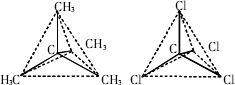 讲析: CH4分子中4个C-H键是等同的,形成正四面体结构,当其中的H被取代后,仍为四面体结构,若4个H原子同时被相同的基团取代,则形成的化合物具有正四面体结构.综上分析可知,①②⑤⑥中都存在四面体结构,而⑤⑥存在正四面体结构,其余分子中均无四面体结构.⑤⑥分子的结构示意图如下: