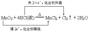 MnCl2+Cl2↑+2H2O氧化剂________,还原剂________.