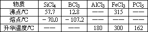 物质 | SiCl4 | BCl3 | AlCl3 | FeCl3 | PCl下标5 |