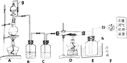 (2)装置A中g管的作用是____________;装置C中的试剂是;装置E中的h瓶需要冷却的理由是____________________________________。